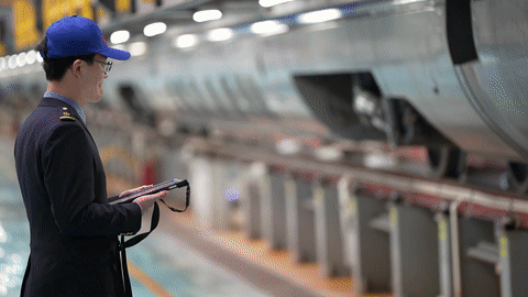 接受指令后,它开始对动车组底部关键部件进行扫描