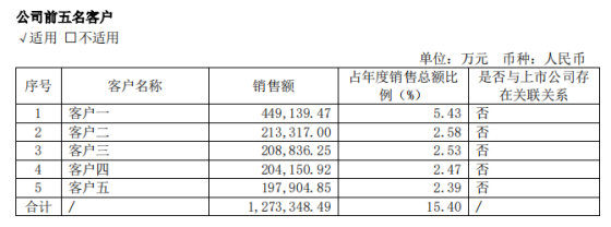 由于光伏电池销售严重依赖晶科能源、晶澳科技等下游组件企业,钧达股份头部客户较为集中。招股书显示,2021-2022年及2023年前三季度,公司前五大客户产生的收入分别为12.76亿元、59.81亿元和70.93亿元,占总收入的比例分别为77.8%、53.9%和49.4%。其中,最大客户晶科能源产生的收入分别为8.84亿元、33.37亿元和37.22亿元,分别占总收入的比例为53.9%、30.1%和25.9%。