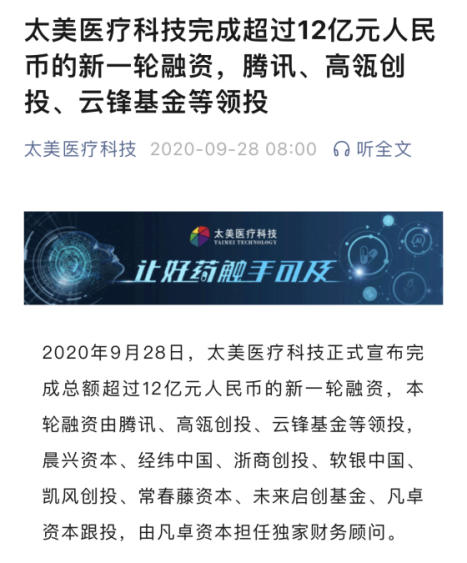 不过,太美科技微信公众号披露的融资数据与上述融资数据存在矛盾。以F轮融资为例,太美科技在2020年9月宣称,公司正式完成总额超过12亿元的新一轮融资,而招股书显示的实际融资额仅10.7亿元。