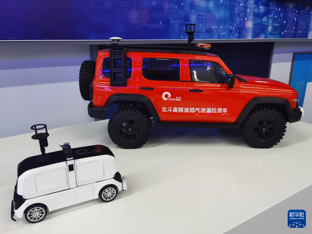 北斗高精准燃气泄漏检测车模型。新华社记者 白田田 摄