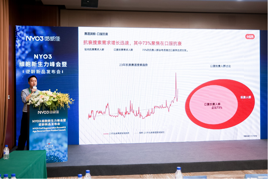 随着抗衰老行业的迅速发展,抗衰的人群越来越年轻化、高端化,抗衰市场未来具有千亿发展空间。小红书发布的《全民抗衰趋势及消费者洞察》显示,在小红书平台上,抗衰搜索需求增长迅速,其中73%聚焦在口服抗衰站内抗衰需求人群7300万,口服抗衰需求人群5500万,73%的抗衰人群会考虑通过口服来达成功效。