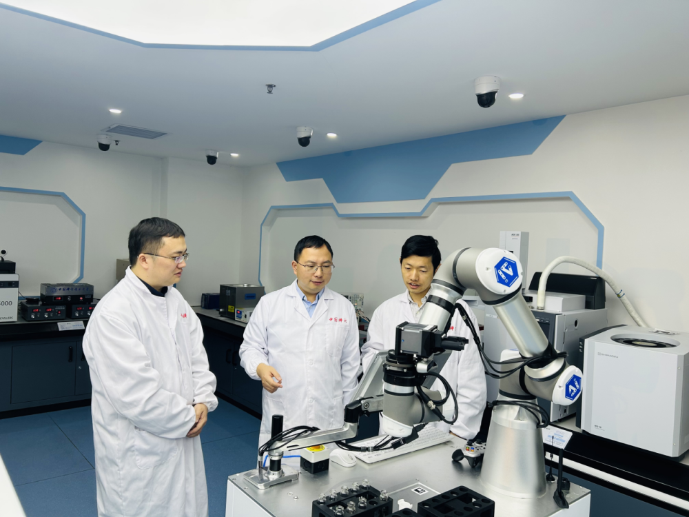 “机器化学家”小来与科研人员“讨论”实验方案。新华社记者 周畅 摄