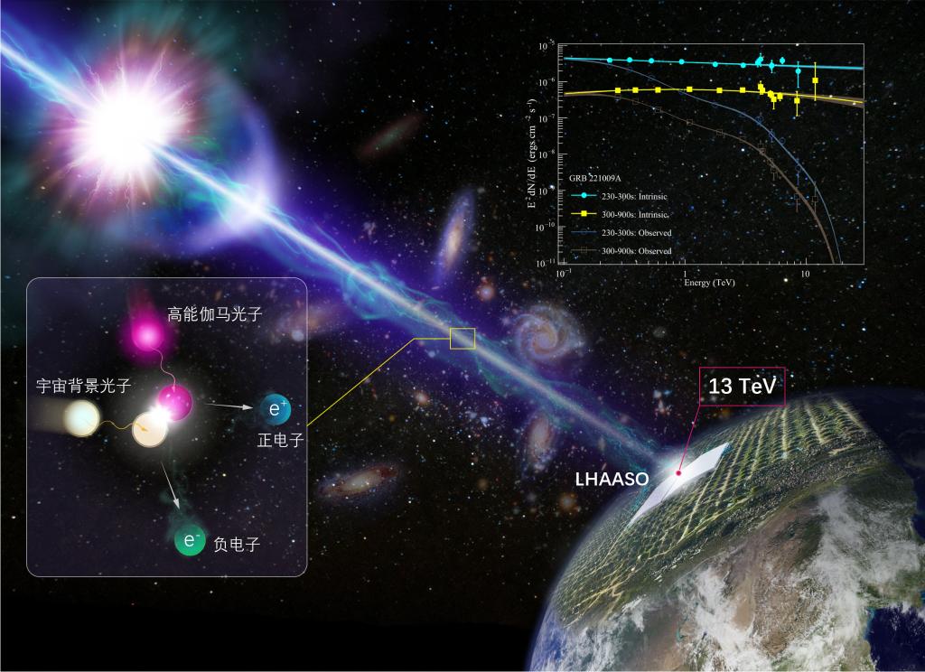 科学家利用我国高海拔宇宙线观测站“拉索”(LHAASO),精确测量了迄今最亮伽马暴GRB 221009A的高能辐射能谱,并据此获得了对伽马暴的全新认知。