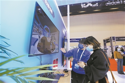 “这是元宇宙3D书店,它的布局、藏书规模与一般的实体书店几乎一模一样。用这个操控手柄,你就可以去自己喜欢的区域,比如文学区、科技区、天文区等,再从该区域书架上选择自己喜欢的书。”中国移动展区工作人员滕慧旭向记者介绍,用户翻开书可以看到简介和网友评价。如果用户想购买这本书,点击“购买”按钮,书就能被寄到家。
