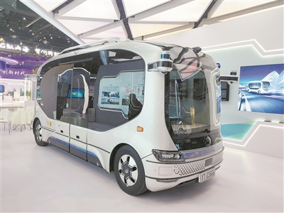 “这是我们面向智慧城市研发的自动驾驶小巴‘小宇’。从车内看,它没有驾驶室,整车配有10个座位。车内两侧的电子屏幕可以显示车辆到站信息,车前窗上方的显示屏则能实时显示车前方的景象。‘小宇’的续航能力可以达到150公里。”郑州展区相关工作人员梁栋对记者说。