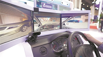 图① 装有5G智能监控系统的智能AI视频模拟驾驶舱。李忠明摄