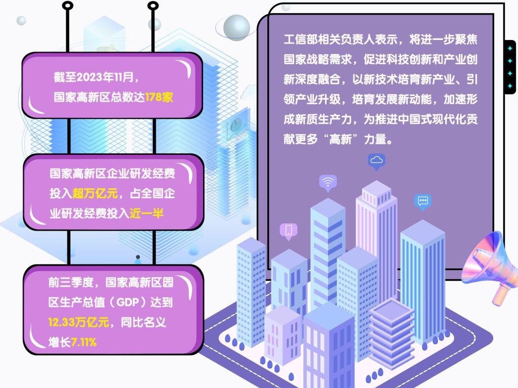 ——经济发展量质齐升,呈现持续恢复向好态势。工信部数据显示,2023年前三季度,国家高新区园区生产总值(GDP)达到12.33万亿元,同比名义增长7.11%,占全国比重为13.50%;规模以上工业企业利润连续四个月实现同比正增长,企稳回升态势明显。
