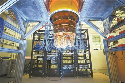 新成果有望使量子计算机变得更实用。图为安装在低温室的谷歌量子计算机。图片来源:物理学家组织网