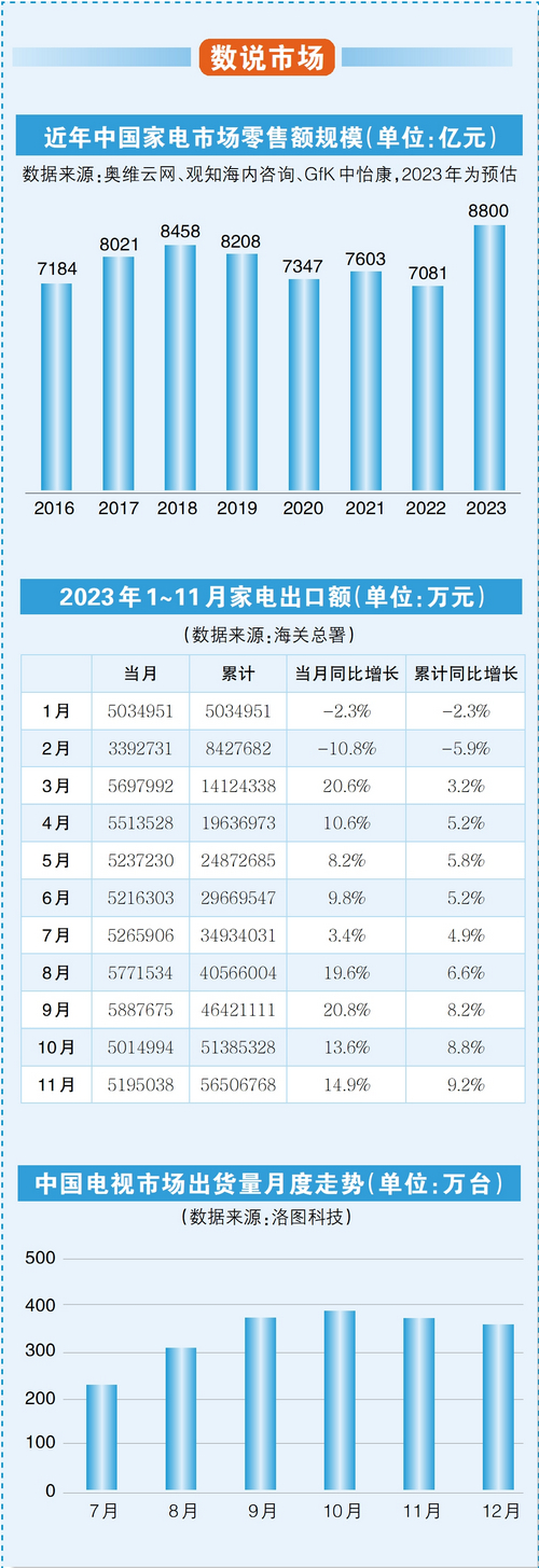 多位业内人士分析认为,2024年家电内销市场仍将处于结构性调整的周期,预计全年零售额微增。在调整周期中寻觅新机,伴随“体育大年”的到来,体育营销将呈多品牌运作格局;外销仍是重要增长极,做好价值出口是关键,海外布局将从“走出去”转变为“走进去”。
